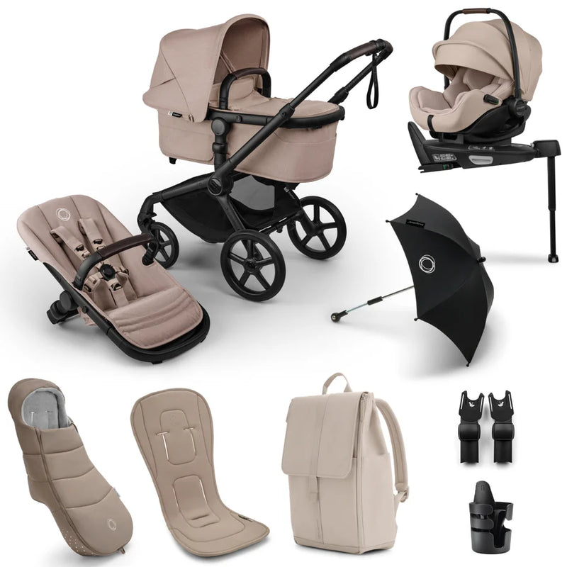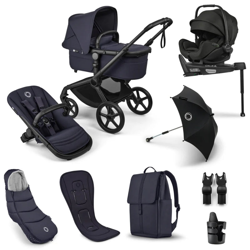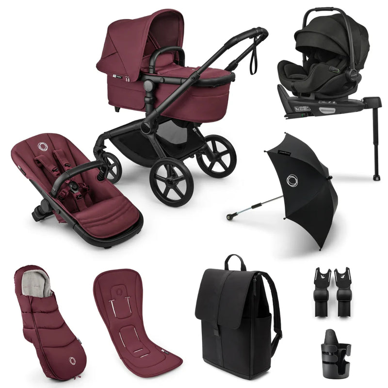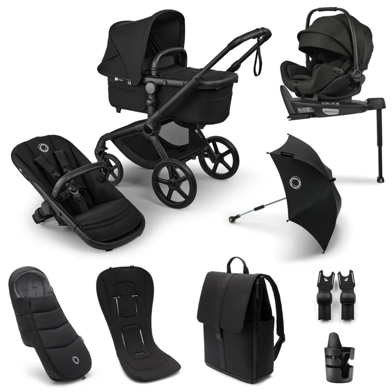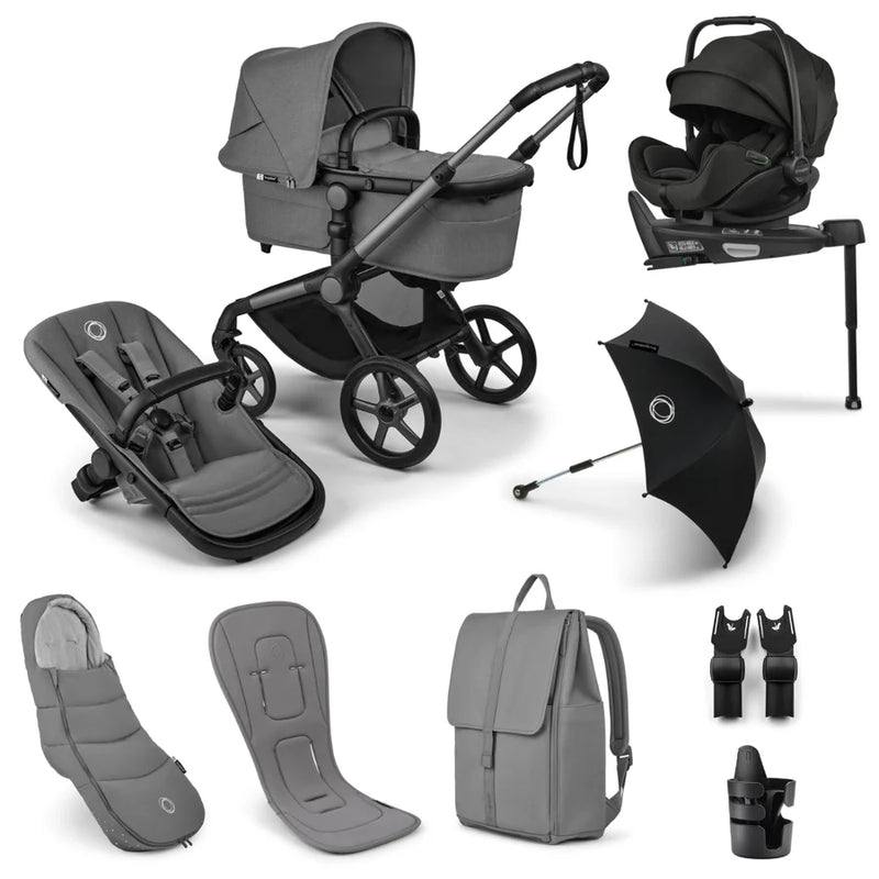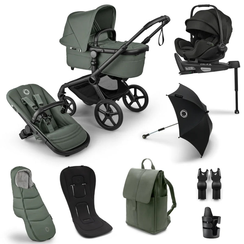 Bundle Includes: Bugaboo fox 5 Renew complete, backpack, footmuff, cup holder, seat liner, parasol, raincover, Fox 5 adaptors, Otter 360 and Base