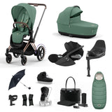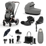 Cybex new Generation e-PriamFrame (Rose Gold) / Seat pack / Lux Carrycot / Raincovers / Cupholder / Footmuff / Parasol / Tote Bag/ Car Seat Adapters / Cloud T / Base T