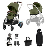 eGazelle S Chassis, Seat Unit, Carrycot, Extra Shopping Basket, Footmuff, Car Seat Adapters, Seat Unit Raincover, Carrycot Raincover, Cupholder.