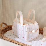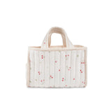 A charming way to keep changing essentials organised. Our quilted nappy caddy is designed to make nappy changes easier, wherever they happen. The structured cotton design includes three roomy compartments and a handy outer pocket, giving you space to store nappies, wipes, creams and more. Finished in our vintage-style Ditsy Cherry print, it looks beautiful on a changing table or tucked beside the sofa - and is easy to carry from room to room.