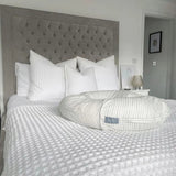 The BellaMoon Pregnancy & Nursing (3-in-1) Pillow solves your pregnancy sleep problems by providing intense comfort to you, your bump and your baby during your pregnancy and breastfeeding journey.   Our C-shaped pillow elevates your limbs, separates your hips and allows your spine to adopt a neutral position as you lie on your side - the healthy position for pregnancy.