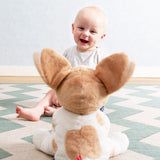 When you press his left foot; Danny will sing the song ‘Do your ears hang low’ and flap his ears on the rhythm and text. When you press his right foot; Danny will start playing the Peek-a-Boo game by covering his eyes and saying: ‘Where are you....? Peek-a-Boo, I see you’ and lots of laughter.