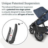 For more comfort when pushing, the continuous push bar can be adjusted in 4 positions and thus adapts to your height easily.You can even use the comfortable off-road hero RIDGE from birth so as to benefit from its unbeatable advantages earlier. For example, it can be combined with the spacious carrycot (sold separately), which offers your baby a safe place on every trip.