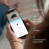Check on baby with 1080p HD video and night vision streamed right to your phone. Enjoy peace of mind with AES 128-bit encryption - making the Owlet Cam 2 Baby Monitor more secure than analogue monitors. And get a full view of baby with a wide-angle view and 4x zoom.